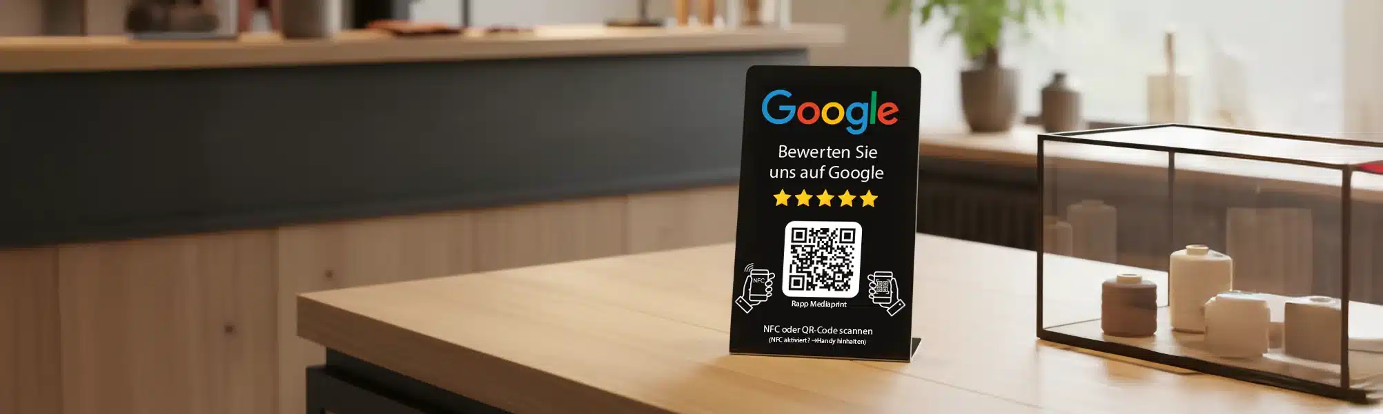 Sichern Sie sich jetzt Ihren Bewertung-Aufsteller – und sammeln Sie positive Google-Rezensionen direkt vor Ort.